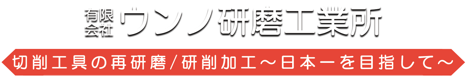 有限会社ウンノ研磨工業所のホームページに訪問頂き誠にありがとうございます。東京都大田区にほど近い品川区南大井と茨城県那珂市に工場を構え、関東一円(東京・神奈川県・埼玉県・千葉県)を中心に各種切削工具の再研磨と研削加工を行っております。